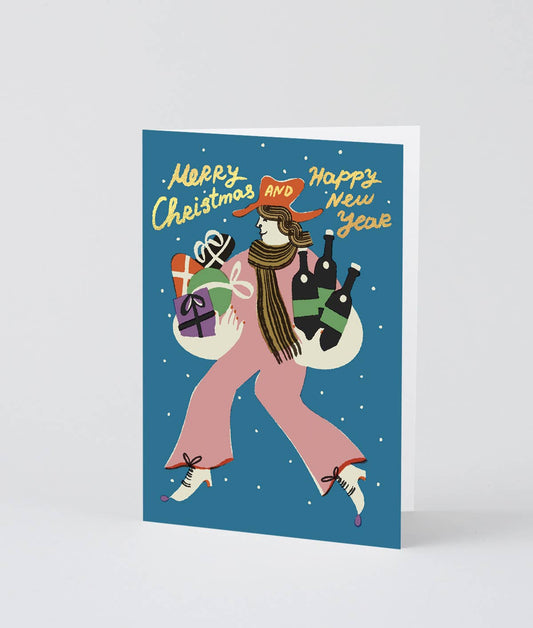 Merry Christmas and Happy New Year Holiday Greeting Card