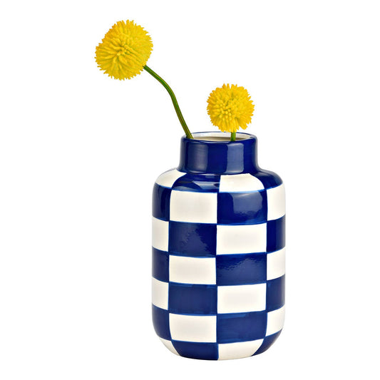 Blue and white Checkered Ceramic Vase