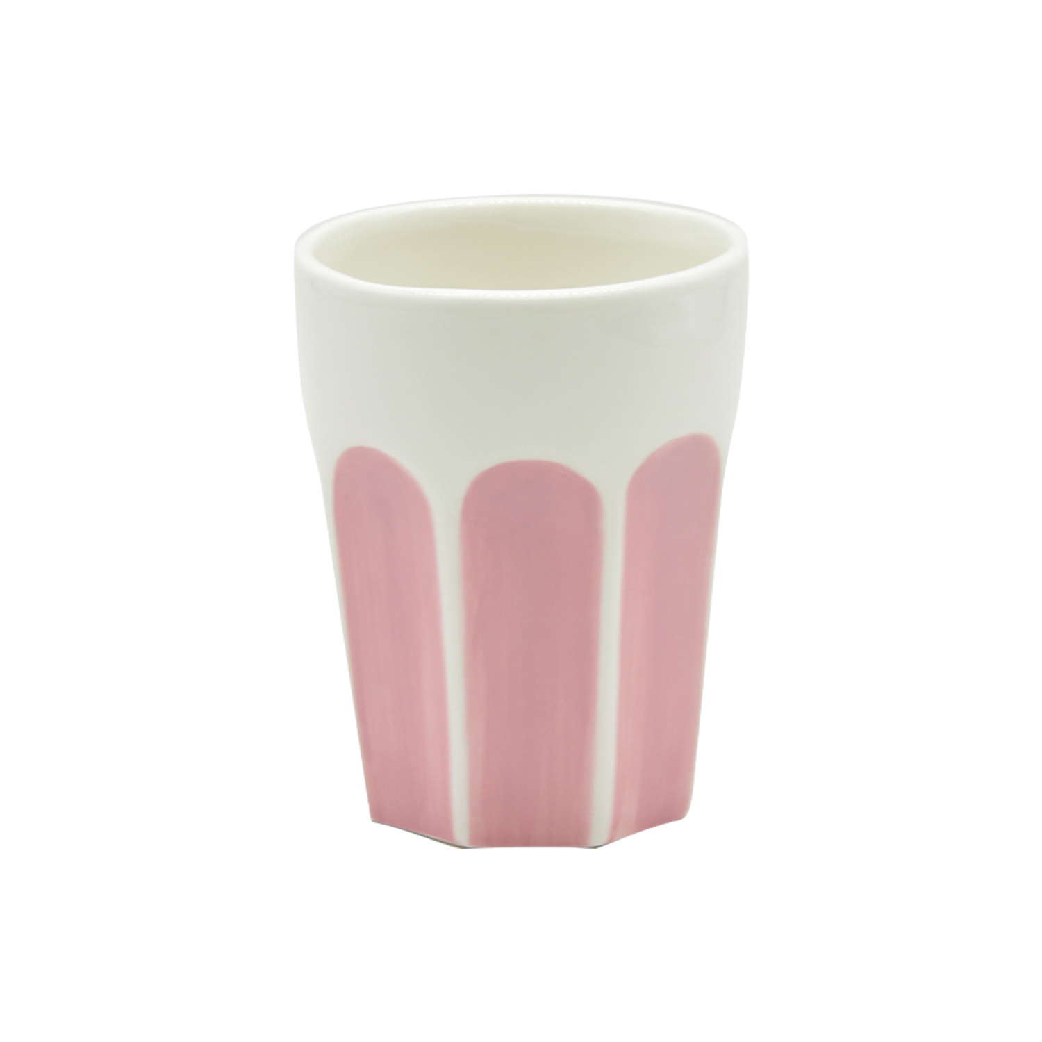 This oversized handleless cup brings a touch of artisanal charm to your daily routine. Featuring hand-painted flat ribs in a cheerful pink hue, every piece tells its own story—no two are exactly alike. Crafted from durable earthenware and designed for everyday enjoyment, it holds a generous 357ml. The minimalist silhouette (8.8cm diameter, 11cm height) pairs beautifully with any kitchen aesthetic. Dishwasher safe for easy cleanup.