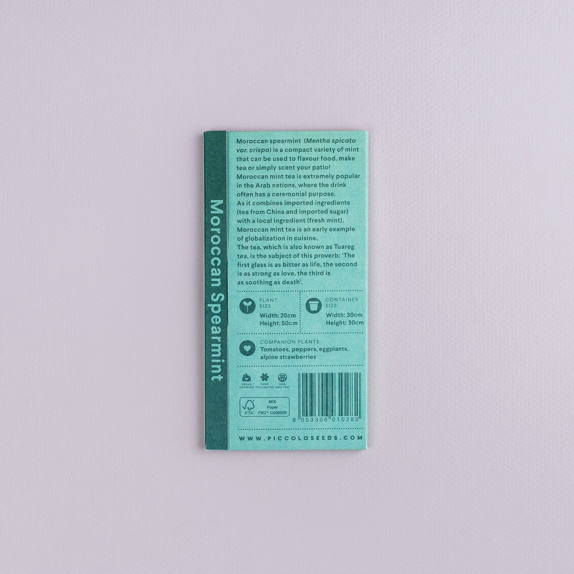 Moroccan Mint (Mentha spicata var. crispa) is a pretty, compact variety of mint that looks good in your garden and can be used to flavour food, make tea or simply scent your patio! Moroccan mint tea is extremely popular in the Arab nations, where the drink often has a ceremonial purpose, especially when made for guests by the man of the house. As it combines imported ingredients (tea from China and imported sugar) with a local ingredient (fresh mint), Moroccan mint tea is an early example of globalization in cuisine. The tea, which is also known as Tuareg tea, is the subject of this apt proverb: ‘The first glass is as bitter as life, the second is as strong as love, the third is as soothing as death’.