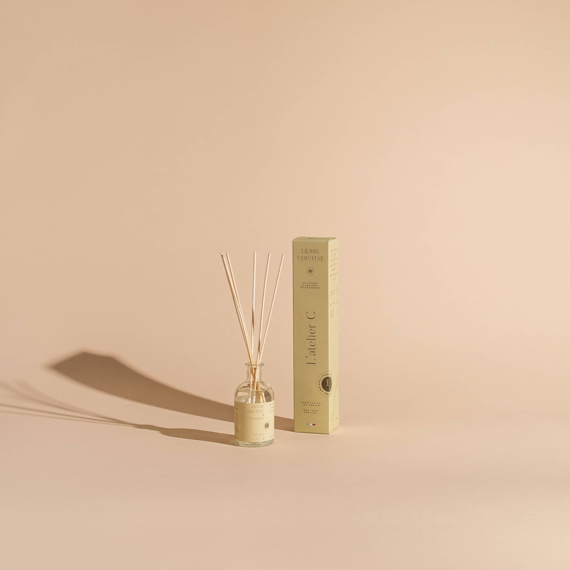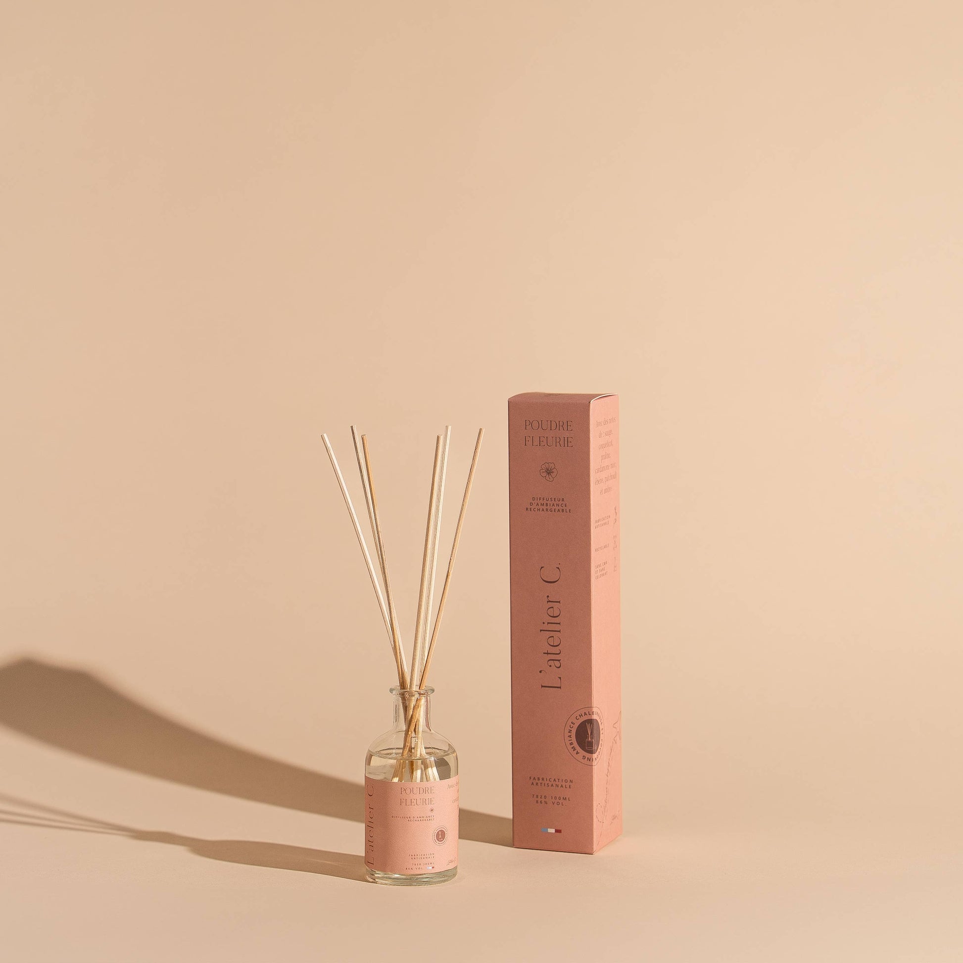 Discover our collection of reed diffusers, each crafted with fragrances made in Grasse. These elegant glass diffusers with wooden caps release subtle, continuous scents through natural capillary action, lasting 2-3 months per fill. Refillable and eco-conscious, they transform any room into a sanctuary of refined fragrance.