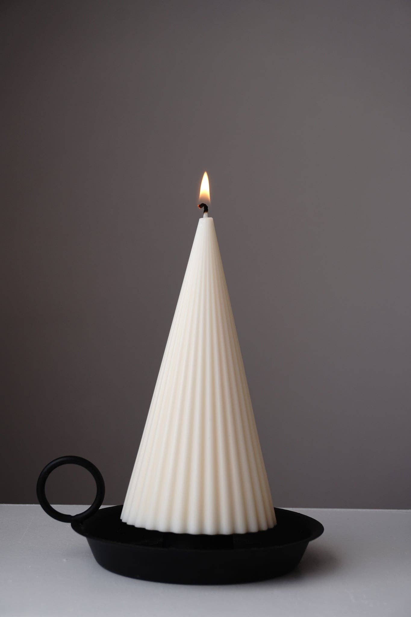This Ribbed Triangle Candle is handcrafted in the Netherlands using 100% natural soy wax, appreciated for its creamy tone.